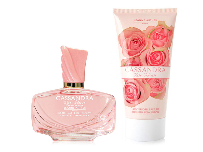 Nước hoa nữ Jeanne Arthes Paris Cassandra Rose Intense EDP được xemi là bản tình ca màu hồng, từ chai đựng bằng thủy tinh hồng đến hương hoa hồng chủ đạo và xuyên suốt các lớp hương. Hương đầu là sự kết hợp của hoa hồng, cam Bergamote, quả vải. Hương giữa gồm đàn hương, lan Nam Phi, linh lan, hồng nhí. Hương cuối là đào, hổ phách, xạ hương. Bộ sản phẩm gồm nước hoa 100 ml và sữa dưỡng thể cùng thương hiệu, dung tích 150 ml có giá niêm yết 690.000 đồng, cuối tuần ưu đãi 28% còn 499.000 đồng.