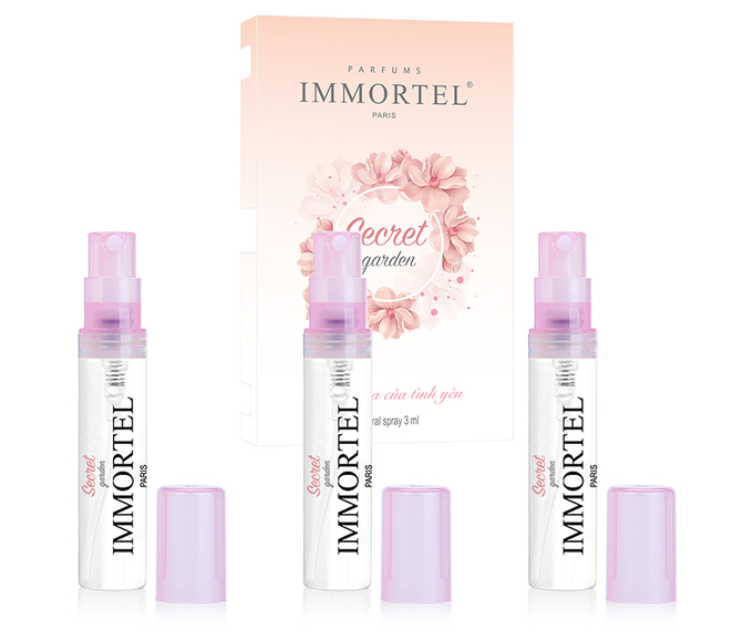 Nước hoa nữ Secret Garden EDP của Immortel Paris lấy cảm hứng từ khu vườn bí ẩn trong những lâu đài ở miền Nam nước Pháp. Dòng sản phẩm là sự hòa quyện giữa hương nhài phương Đông với hoa hồng tháng 5, cam Bergamot, hương vani, cỏ thơm Patchouli, cỏ Vetiver và xạ hương trắng. Một bộ gồm 3 chai xịt, mỗi chai 3 ml có giá niêm yết 147.000 đồng, cuối tuần ưu đãi 41% còn 86.000 đồng.