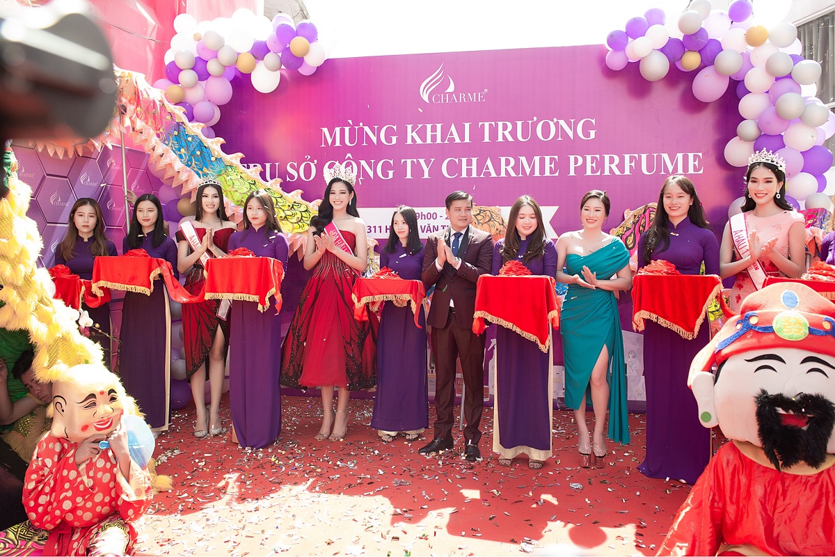 Buổi lễ khai trương diễn ra tại trụ sở chính 311 Hoàng Văn Thụ, phường 2, quận Tân Bình, TP HCM. Tại đây, Top 3 Hoa hậu Việt Nam 2020 đã tham gia nghi thức cắt băng khánh thành cùng đại diện Charme Perfume. Tân Hoa Hậu Đỗ Thị Hà cũng không quên để lại lời chúc đơn vị khai trường hồng phát, mong thương hiệu nước hoa ngày càng phát triển hơn.